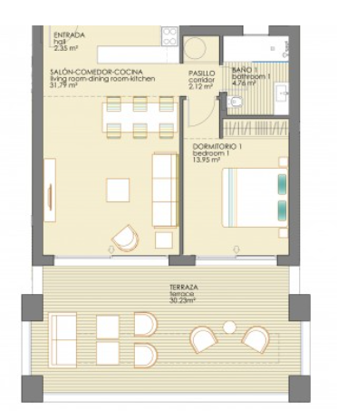 Estepona új építésű lakóparkjában, exkluzív 1 hálószobás , amerikai-konyhás nappalis 30nm-es erkéllyel eladó!