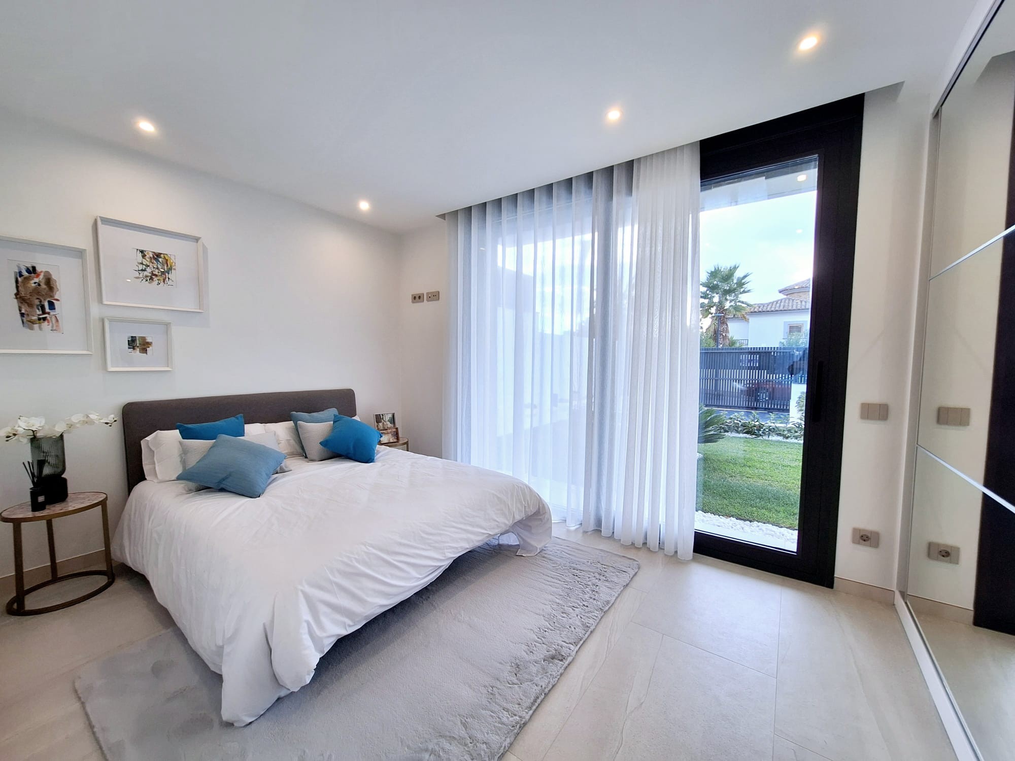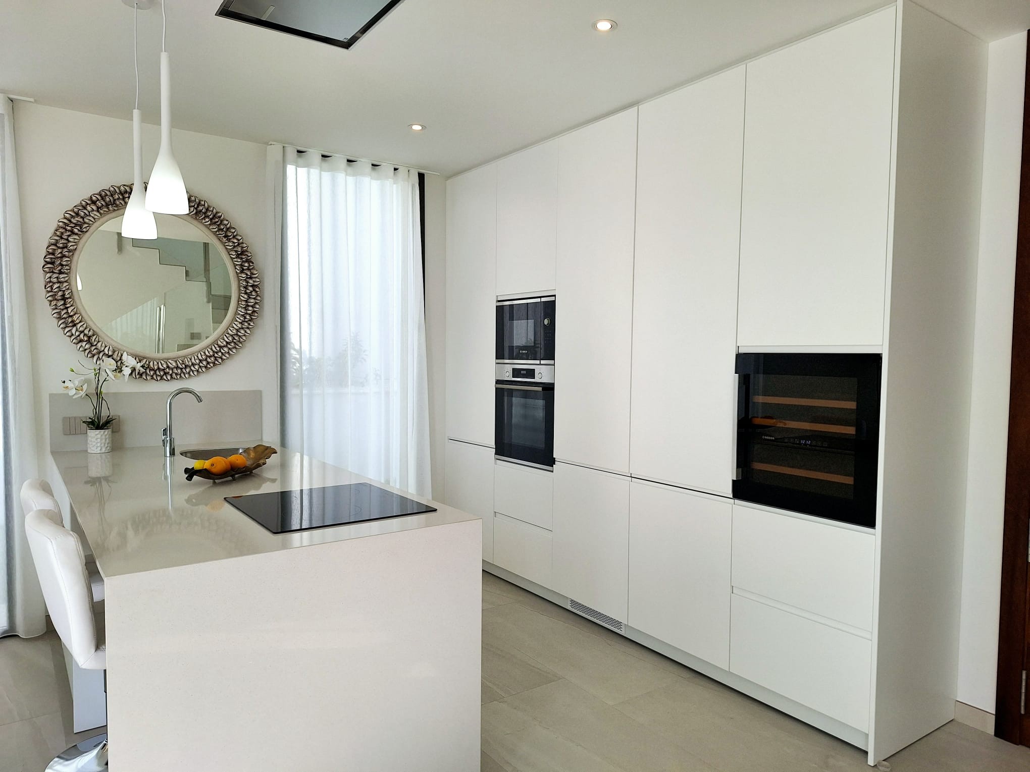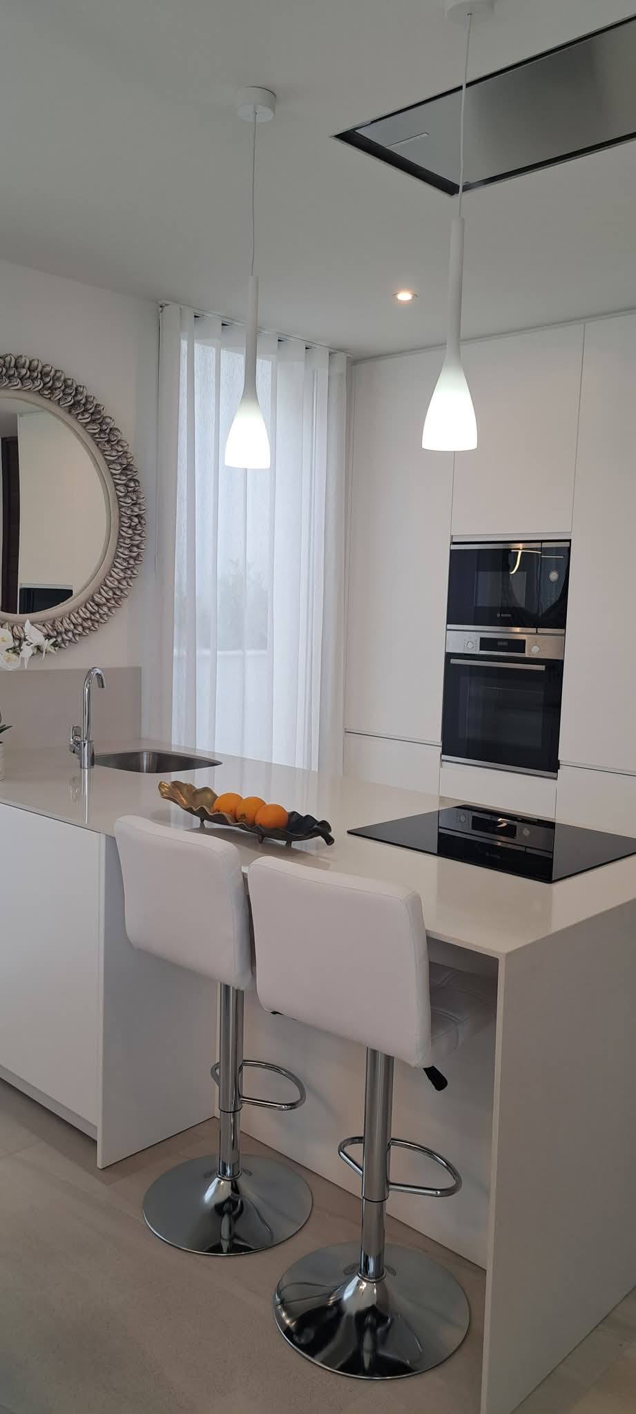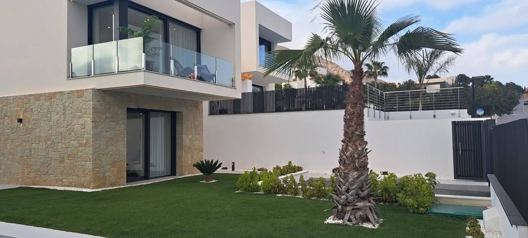 Benidorm felett, Finestraton a Sierra Cortinában 5 csillagos luxusvillák várják új tulajdonosaikat, akik reggelenként a Földközi-tenger ámulatba ejtő panorámájára ébredhetnek. Ez a mediterrán "Beverly Hills" stílusú luxusnegyed pálmafáival, csodás házaival - melyek mögött hatalmas, vadregényes hegyek húzódnak - Finestrat Rózsadombjának is a legelőkelőbb része, melyből elegancia, szépség, és nyugalom árad, amerre csak a szem ellát. A villákban tágas nappali, 3 hálószoba, 3 fürdőszoba, nappali-étkező és felszerelt konyha található. Igény esetén lakberendező alakítja ki az új tulajdonos által megálmodott otthon minden részletét. A konyhákat bútorozottan, gépesítve: - indukciós főzőlap és mikrohullámú sütő - páraelszívó - mosogatógép - sütő - hűtő A kertben: - hatalmas, fűthető medence - fatüzelésű grillező - nagyra nőtt pálmafák, mediterrán gyümölcsfák, virágok Egyedi elképzelés alapján ültetnek, az új tulajdonos igényei szerint, hogy ne kelljen éveket várni a pompás kert látványára. A villák "okosotthonok", technikailag a legkorszerűbb lakásautomatizálás minden részletével felszereltek. Minden a legmagasabb szabványok szerint készült, olyan márkák csúcsminőségű berendezései és anyagai felhasználásával, mint a Florim, Villeroy & Boch, Hansgrohe, Bosch, és még sorolhatnánk.550.000 € - 1,100.000 €