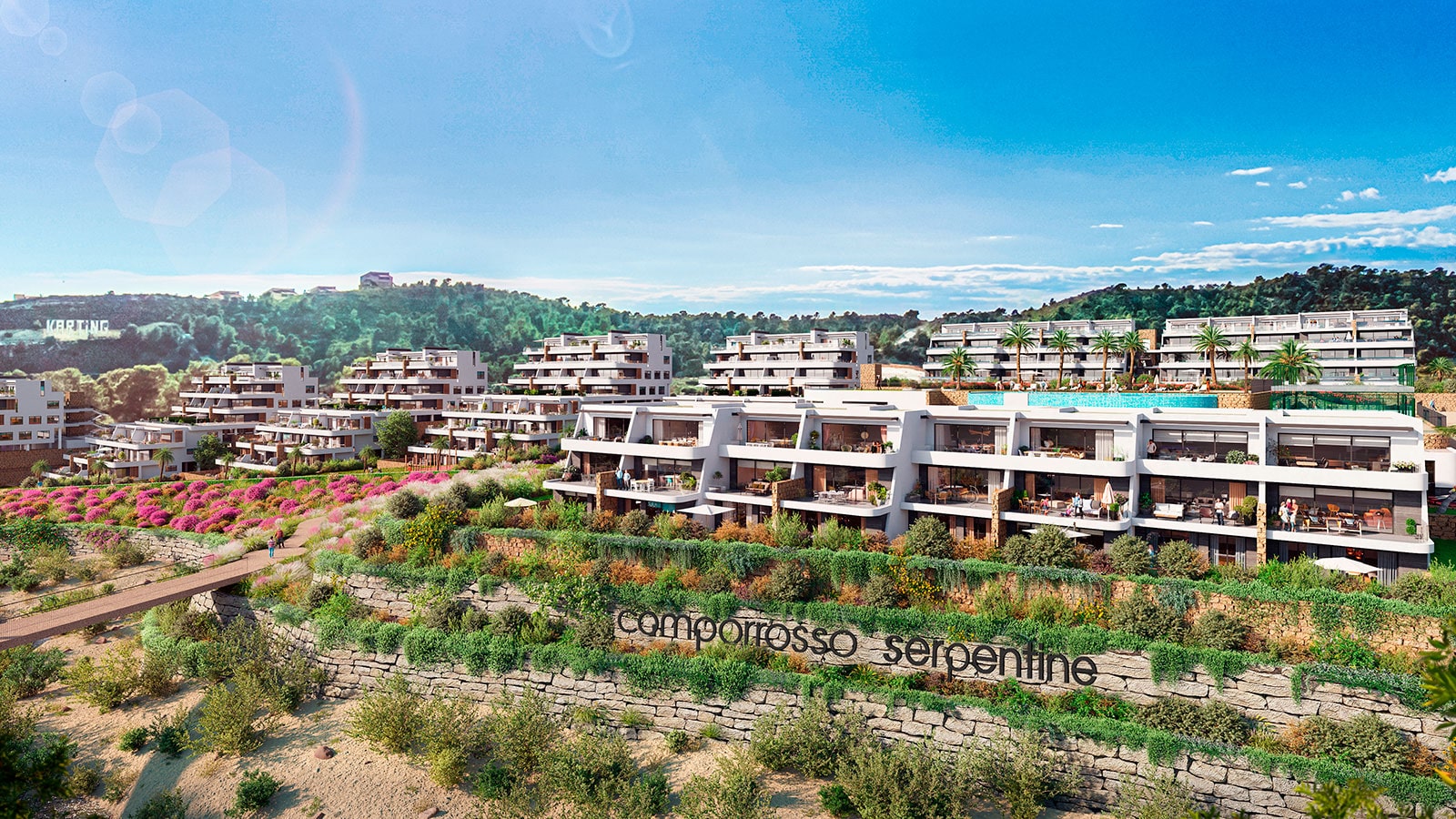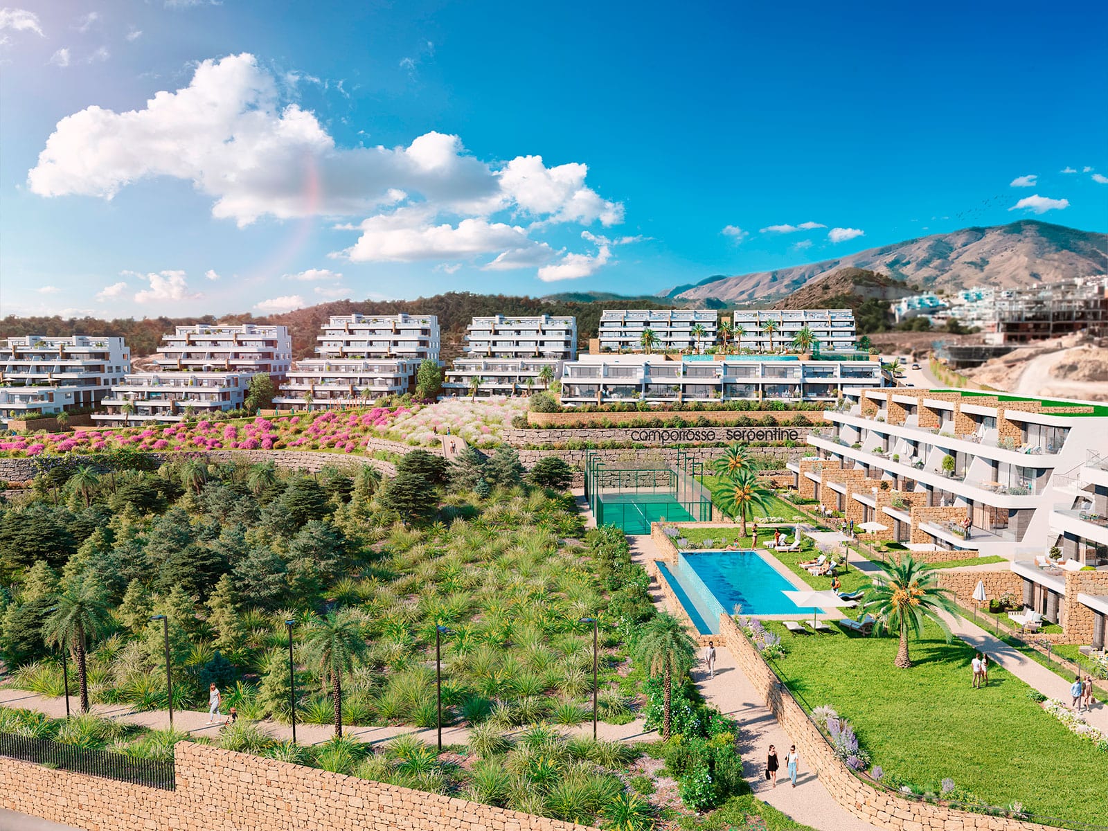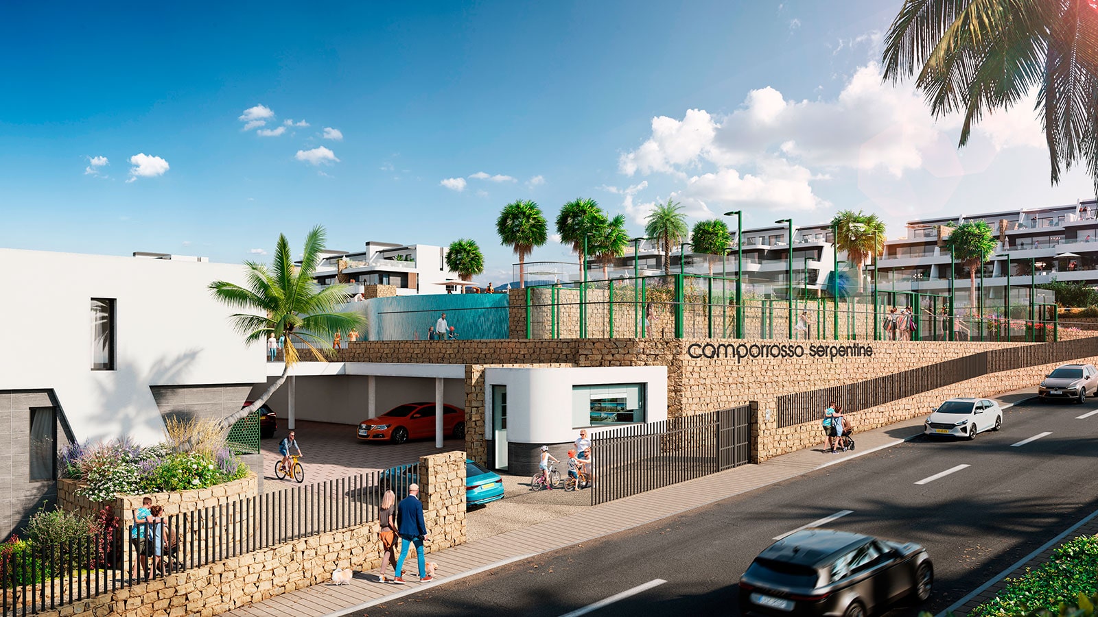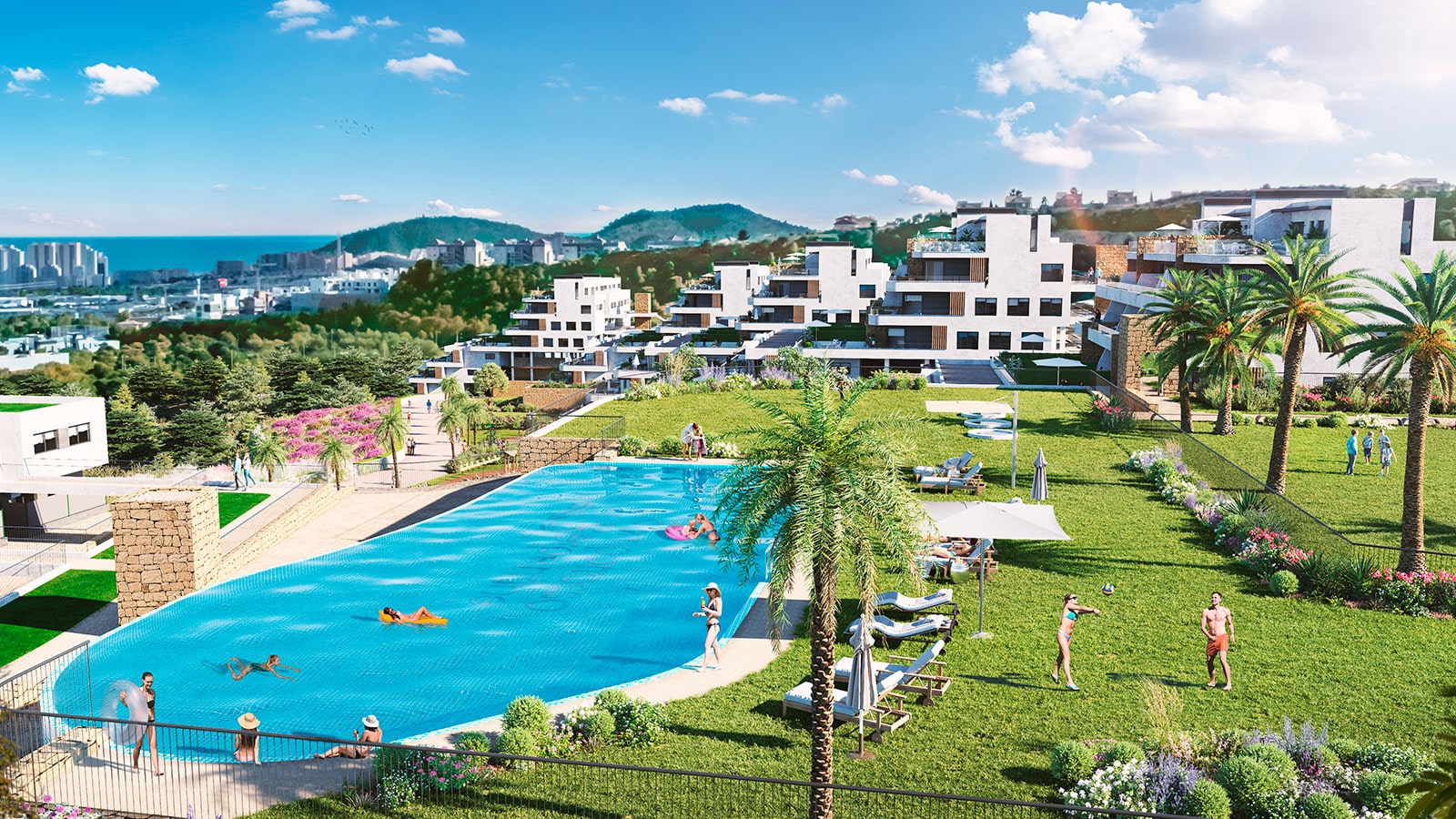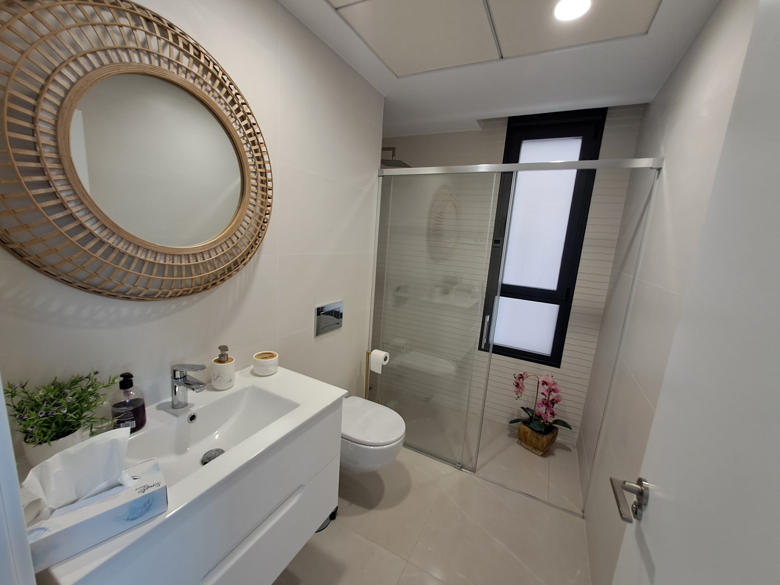 Benidorm kertvárosában, új építésű lakóparkban amerikai-konyhás nappali + 2 hálószobás, nagy erkélyes lakás!