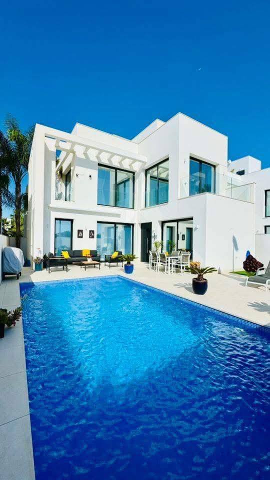 Modern, 2015-ben épült, független lakóparki villa szuper áron Costa Blanca déli részén, Quesadában! A 115 nm-es kiválóan karbantartott két szintes ingatlanban 3 hálószoba, 2 fürdőszoba és egy tágas nappali kapott helyet. A 225m2-es, napfényes, intim telken fűthető medence is kialakításra került. A földszinten egy nagy, modern konyha és tágas nappali, hálószoba, fürdőszoba és mosókonyha található. A nappaliból nagy tolóajtók vezetnek a napsütötte kertbe, a fűthető medencéhez. Az emeleten található két hálószobához egy fürdőszoba valamint egy-egy erkély is tartozik. A második szintről egy lépcsőfoknyira található a napsütötte tetőterasz (szolárium), ahonnan gyönyörű kilátás nyílik a környékre és a sós-tavakra. Összegezve tehát: - 3 hálószoba - 2 fürdőszoba padlófűtéssel - Fűthető medence - Részben bútorozott - Külön mosókonyha - Tárolóhelyiség - Riasztó - Optikai kábel - Saját parkoló - Légkondicionáló (hűtő-fűtő) - Alicante repülőtér 40 km - Golfpálya 3 km - Tenger és strand 4 km - Szupermarket 100 m - Éttermek és egyéb üzletek a közelben - Mediterrán életérzés: helyben! Irodánkban teljeskörű tájékoztatással, jogi felvilágosítással és ügyintézéssel állunk szíves rendelkezésére a hét bármely napján! Pápai Fanni: +36305042903 feeling.fanni@gmail.com