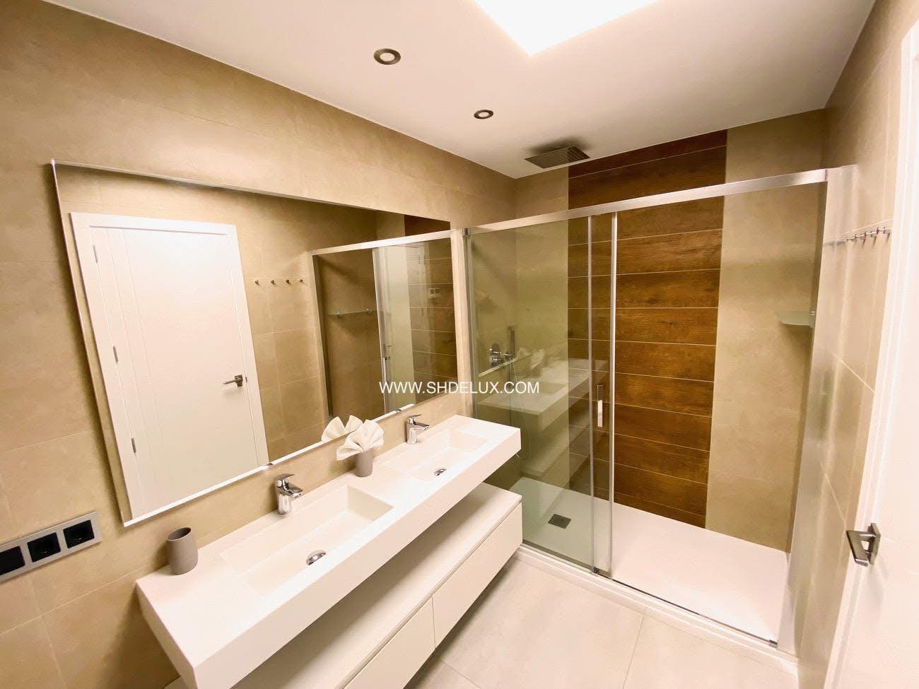 Új építésű luxusapartman a Feel-Ing kínálatában, boldog tulajdonosát keresi! Ez a 2020-ban épült fényűző apartman a Sunset Waves luxuskomplexumban található, amely Benidorm egyik legexkluzívabb épülete. A kényelmi szolgáltatások széles skálájával kivételes életstílust kínál lakóinak. Lenyűgöző létesítményekkel rendelkezik: 3 úszómedence 3 jakuzzi fűtött medence medence melletti bár napozóágyak edzőterem szauna tenisz-, kosárlabda-, foci- és paddle teniszpályák piknikzóna Ezen kívül minden szükséges szolgáltatás kényelmes távolságra, az épületek előtt található. A lakás stílusos, modern bútorzattal rendelkezik. A nappaliból közvetlen kijárat nyílik a teraszra, mely tökéletes környezetet biztosít a mediterrán éghajlat élvezetéhez. A nappalihoz tágas amerikai konyha kapcsolódik. Az apartmanban 2 hálószoba és 2 fürdőszoba található. A fő hálószobához saját fürdőszoba tartozik, és közvetlen hozzáférést biztosít a teraszhoz, ahonnan lenyűgöző kilátás nyílik a tengerre. A második hálószobából csodálatos kilátás nyílik a környező hegyekre. A második fürdőszoba kényelmesen az apartman közepén található. A terasz kivételes hely, hiszen egész nap süt a nap, és gyönyörű panorámás kilátás nyílik a tengerre, így ideális hely a kikapcsolódásra és a mediterrán környezet élvezetére. A lakás minden helyiségében klímával és padlófűtéssel felszerelt, mely egész évben komfortos környezetet garantál. Az ár egy tárolót és egy saját parkolót is magában foglal, mely további kényelmet és biztonságot nyújt. Nyaralóknak egész évben rendkívül jól jövedelmezően kiadható! Beépített terület: 129 m2 Hasznos terület: 110 m2 Közös költség: havi 130 Euró Irodánkban teljeskörű tájékoztatással, jogi felvilágosítással és ügyintézéssel állunk szíves rendelkezésére a hét bármely napján! Pápai Fanni: +36303334437 feeling.fanni@gmail.com
