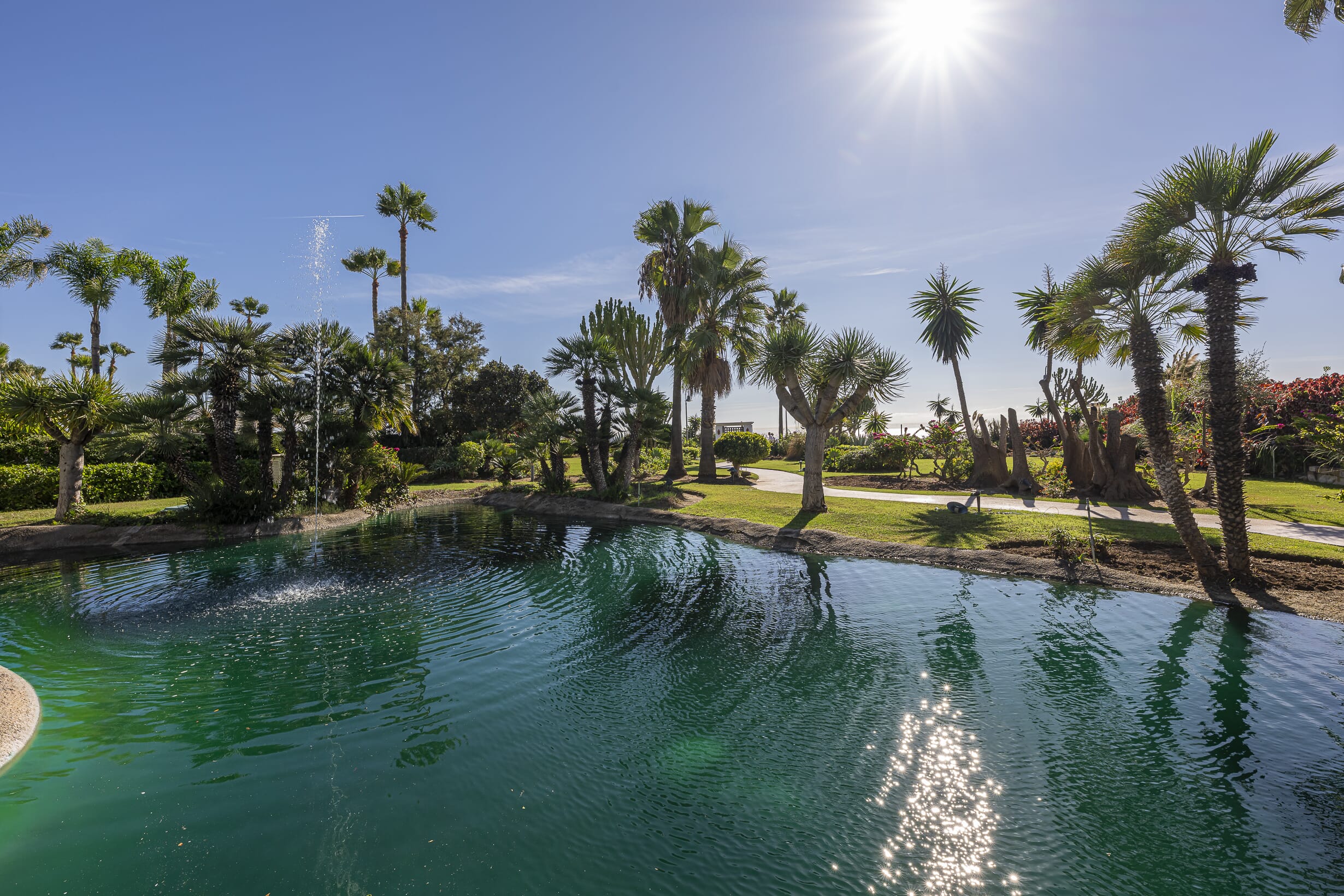 hangulatot kínál, melyet érett kertek, csillogó medencék és Estepona Új